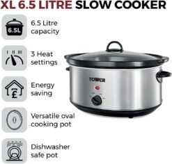 Tower T16020 Infinity Compact Slow Cooker with Keep Warm Function. 1.5L. 120W. Stainless Steel