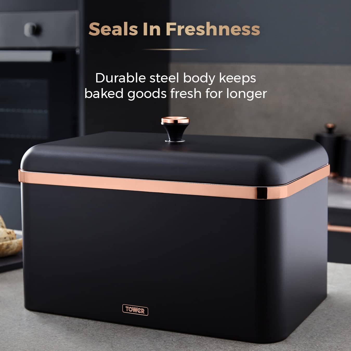 - STYLISH ROSE GOLD ACCENTS: Easy-to-clean bread bin requires just a simple wipe down to maintain its matte finish