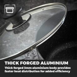 - THICK FORGED ALUMINIUM: Features a 3mm aluminium body which provides faster heat distribution for a more efficient cook