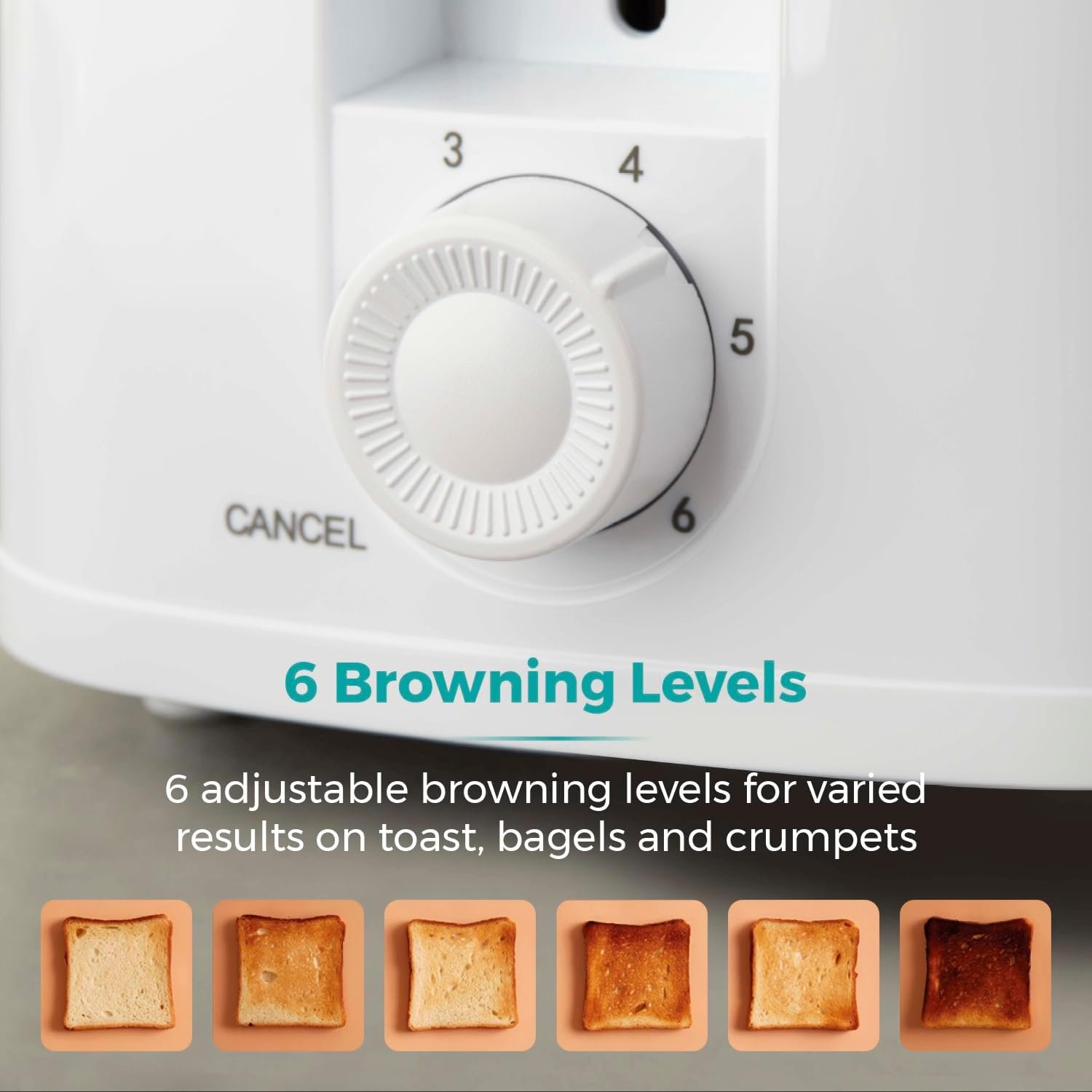 6 adjustable browning levels for varied results on toast. bagels and crumpets