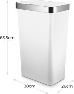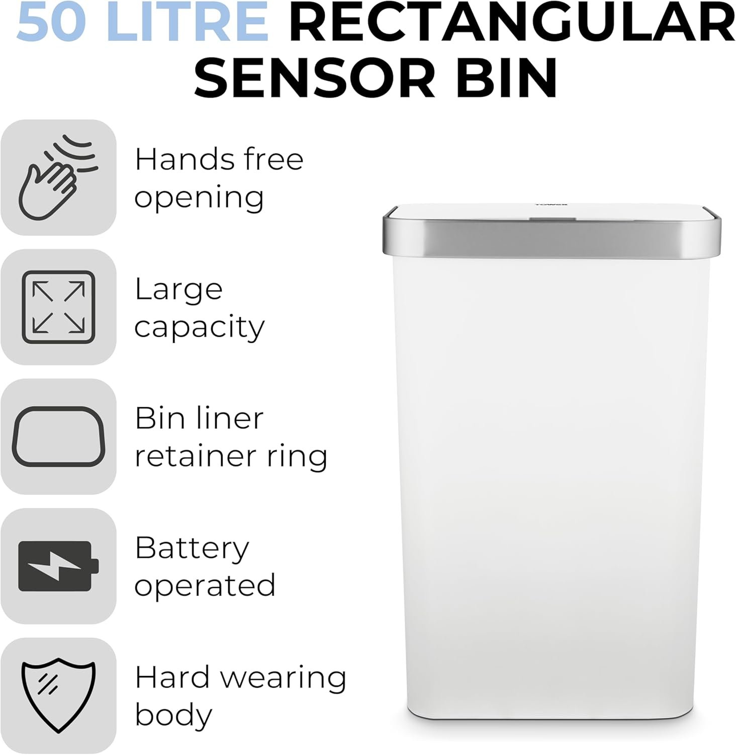 Tower Rectangular ABS Sensor Bin with Bin Liner Retainer Ring. 50L. White