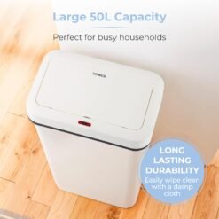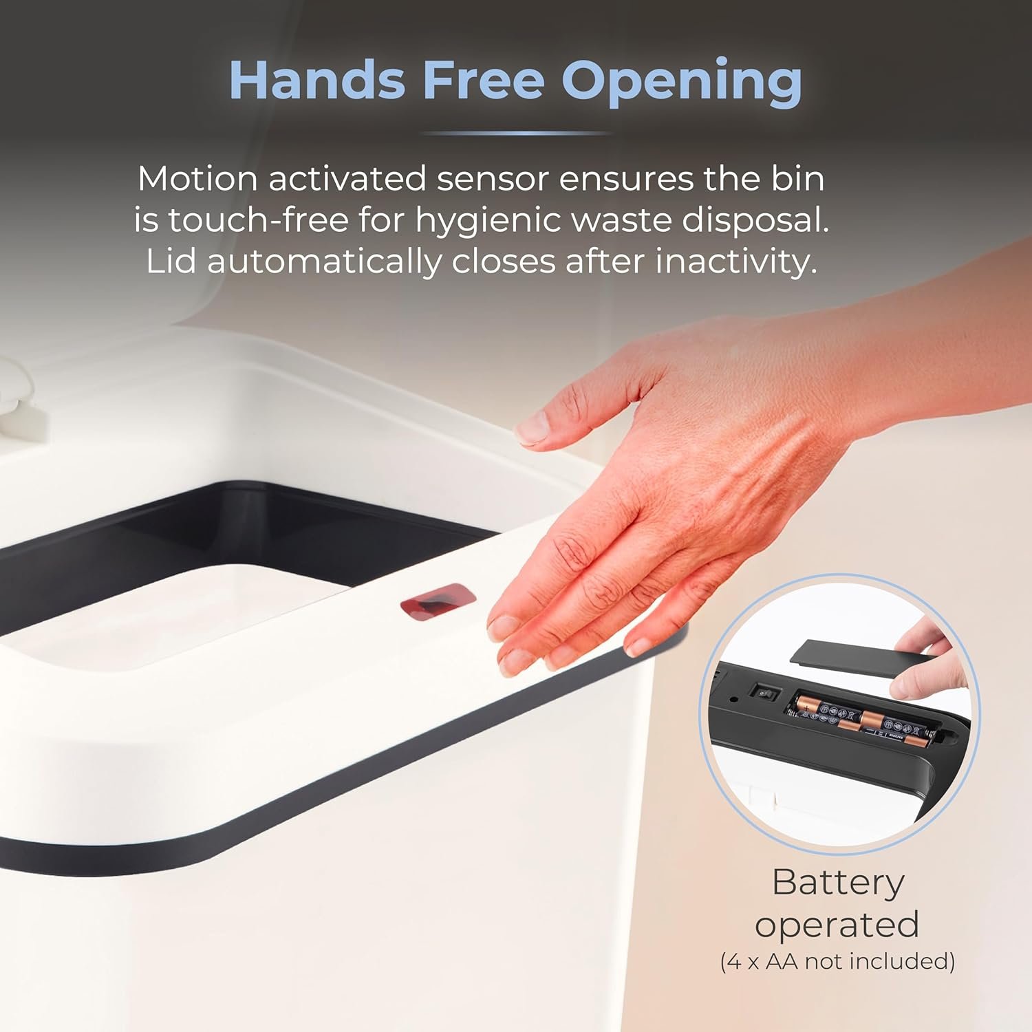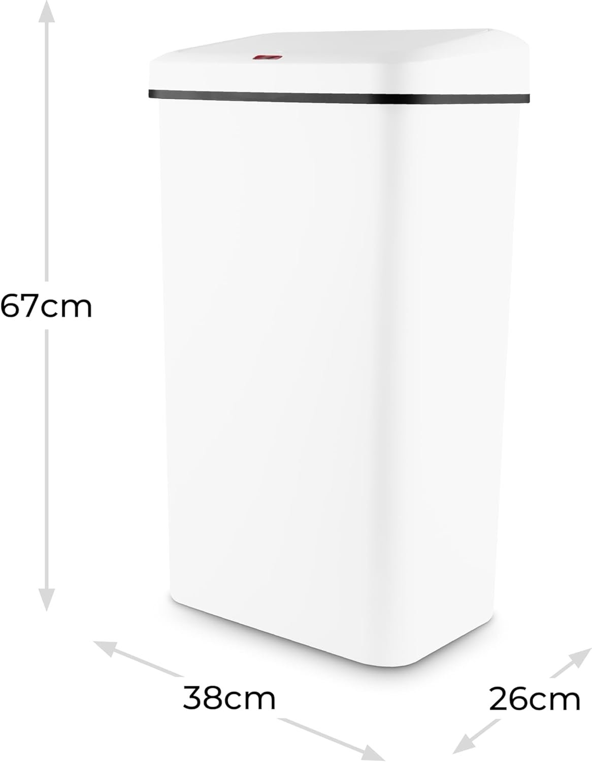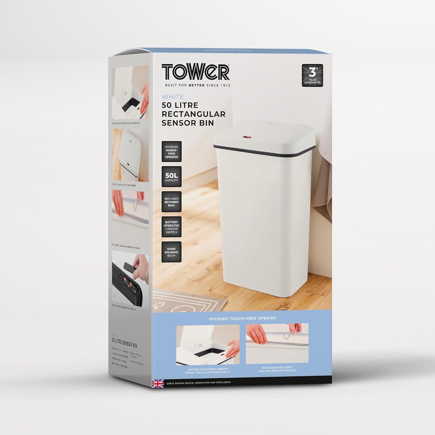 Tower Rectangular Sensor Bin with Bin Liner Retainer Ring. 50L. White
