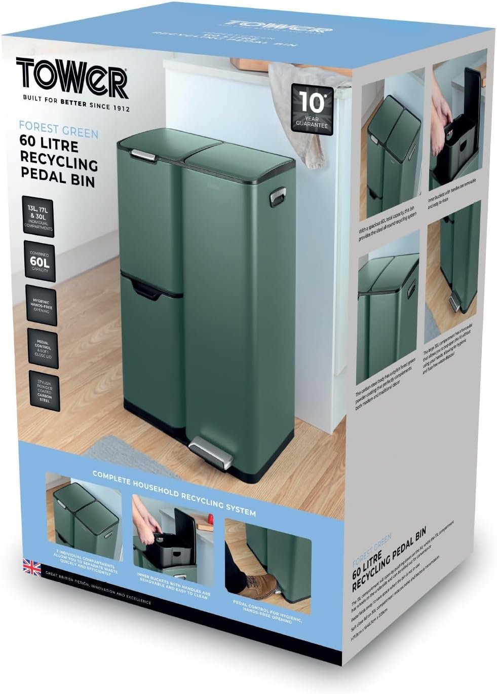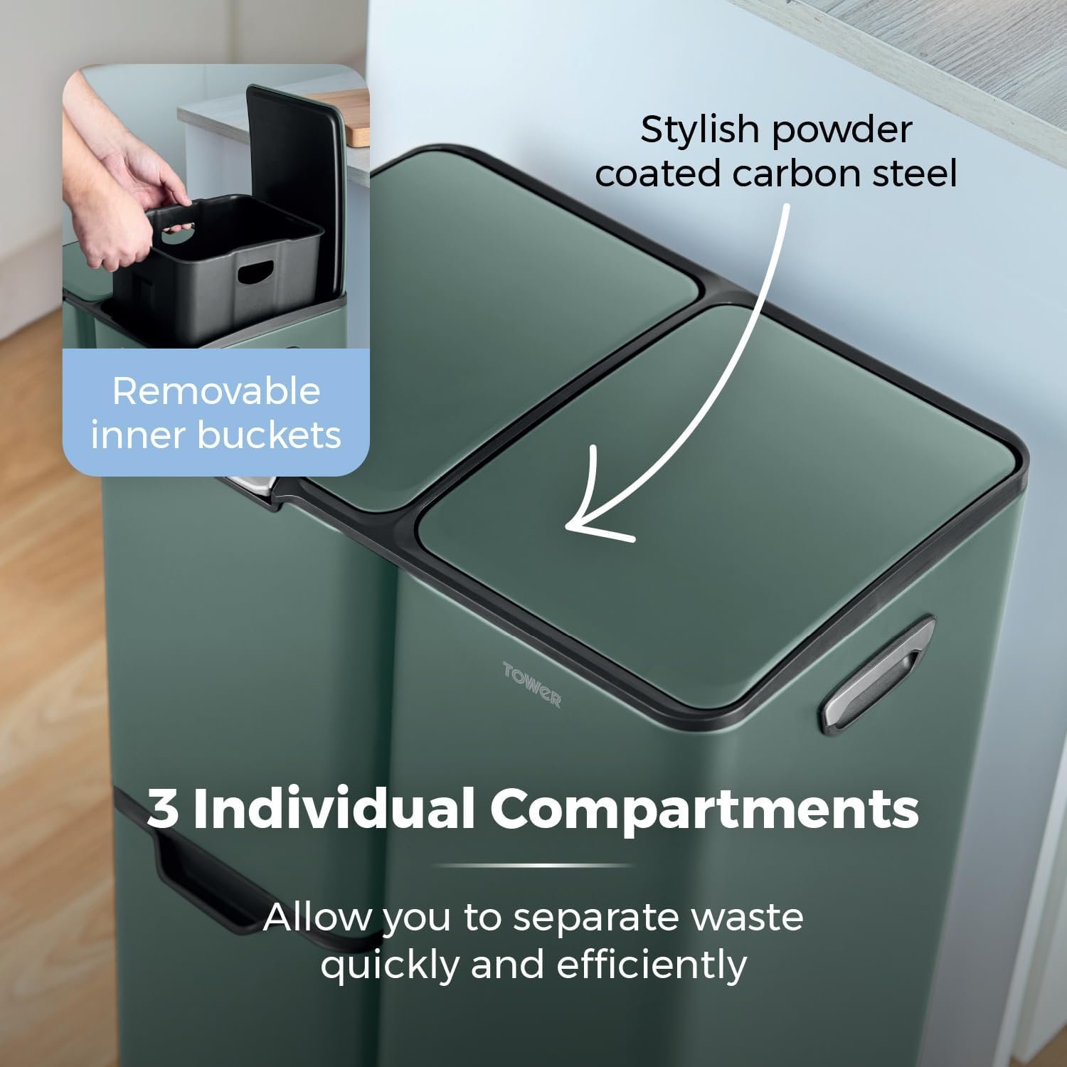 - STYLISH POWDER COATED CARBON STEEL: Constructed from durable carbon steel. this recycling pedal bin is built to last and withstand the rigours of a busy household. with a sleek forest green powder coating that perfectly complements both modern & traditional décor