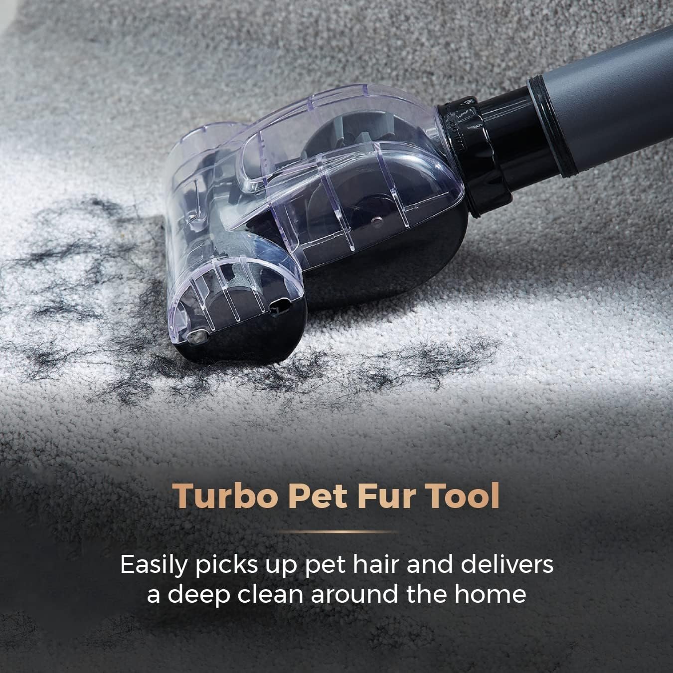 - TURBO PET FUR TOOL: Specifically designed to target embedded hairs with a turbo pet fur tool for removing stray strands from carpets