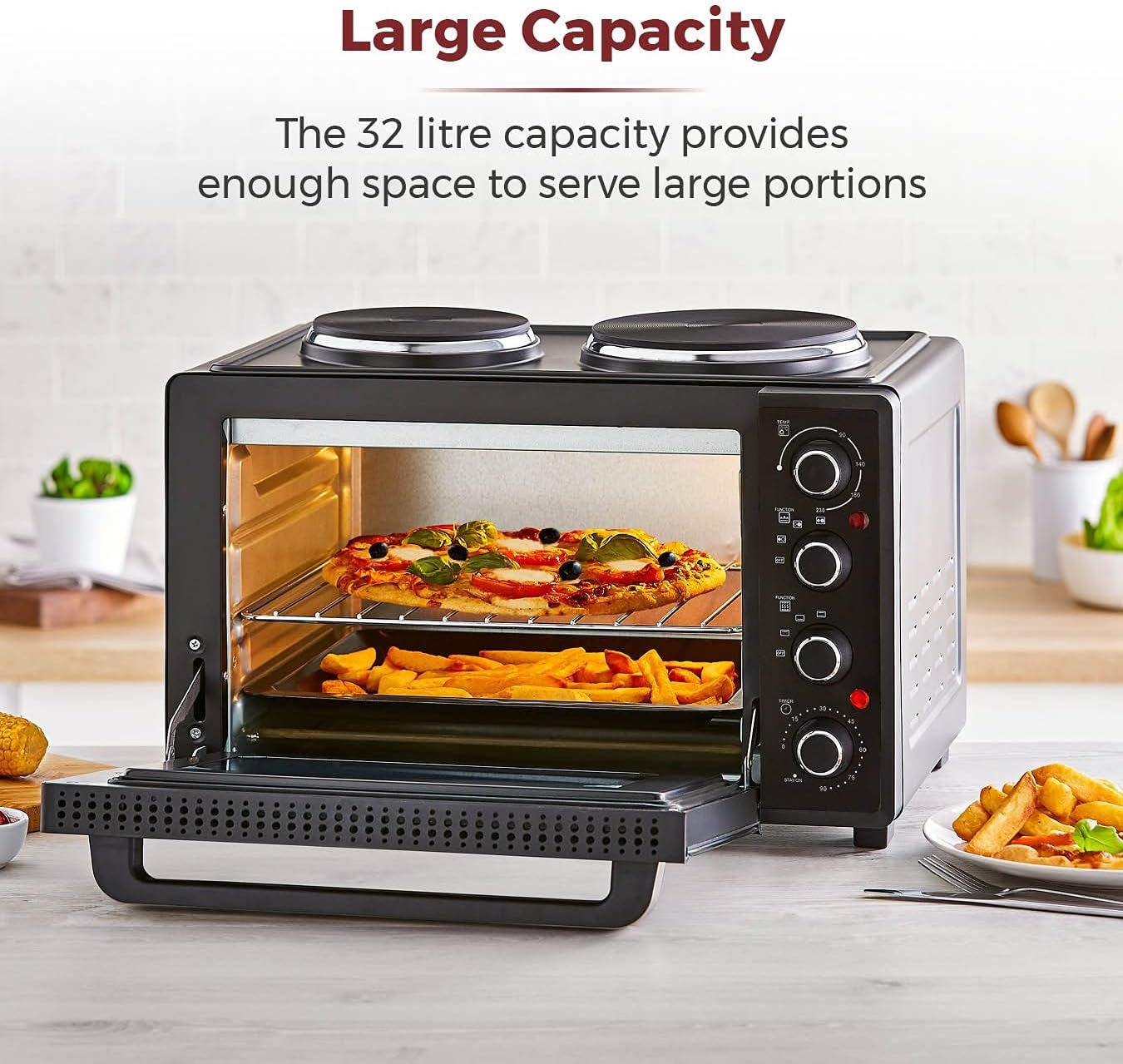 - LARGE CAPACITY: With a big inner capacity. the 32 litre space can easily fit a standard chicken inside. giving you versatility to cook portions of food for the whole family