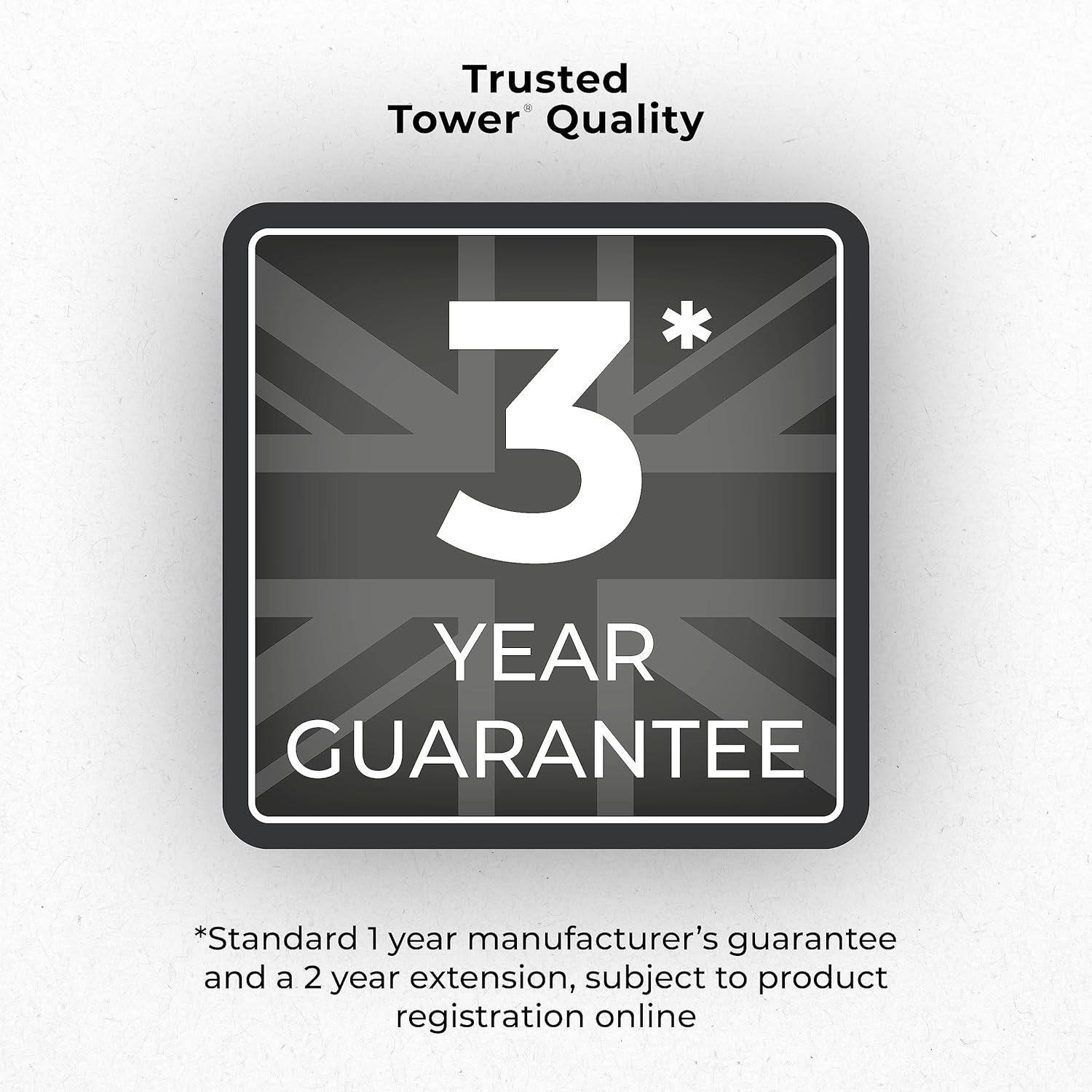 - 3 YEAR GUARANTEE: Trusted Tower quality with a standard 1 year guarantee and optional 2 year extension. subject to product registration online