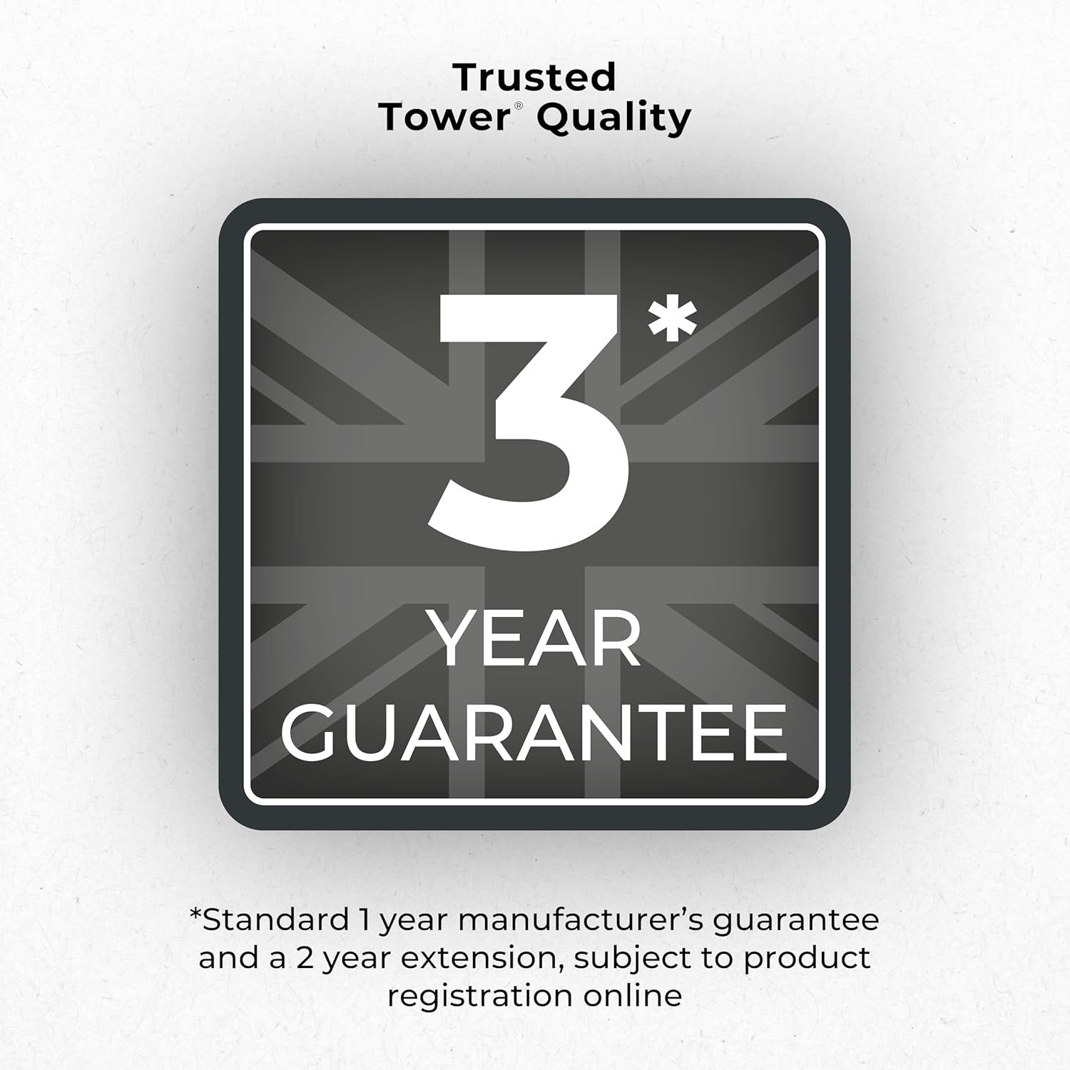 - 3 YEAR GUARANTEE: Trusted Tower quality with a standard 1-year manufacturer’s guarantee and an extra 2 years when you register the product online.
