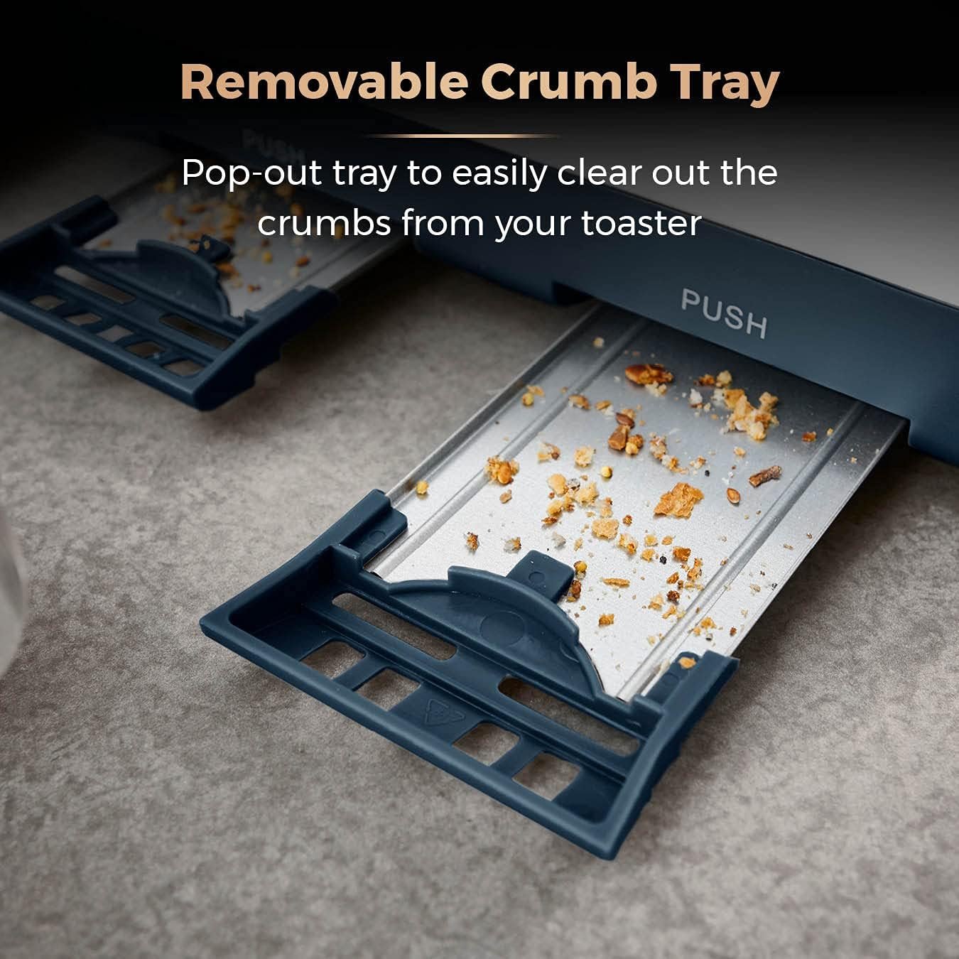- Removable crumb tray is easy-to-empty. ensuring your surfaces are kept tidy