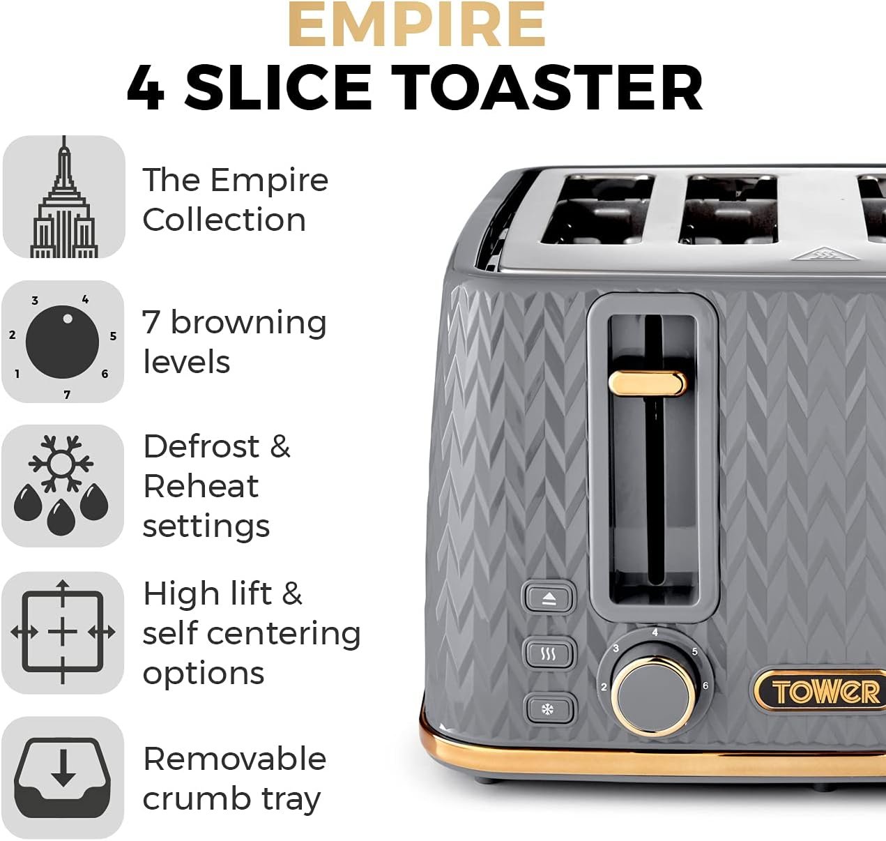 Tower’s Empire toaster combines embossed design with elegant functionality