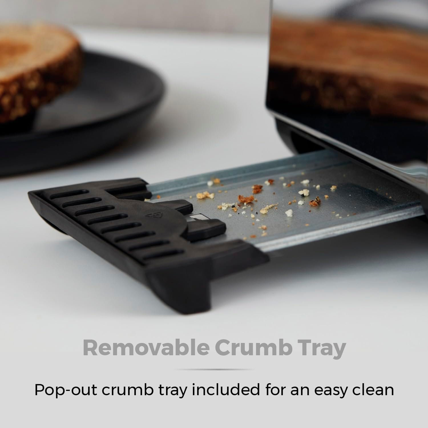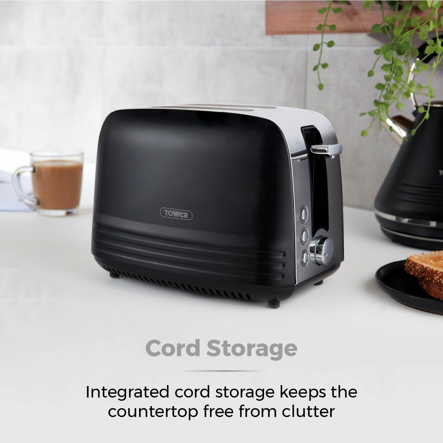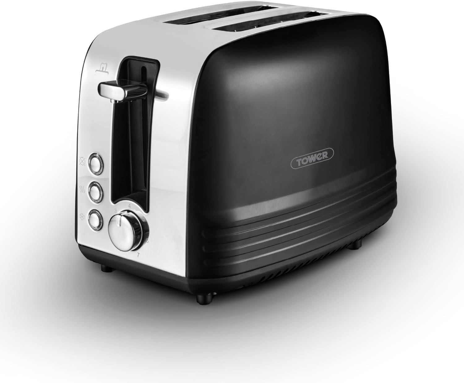 Tower. T20080BLK. Ash 2-Slice Toaster with 7 Browning Levels. Defrost/Reheat/Cancel. 925W. Black & Chrome