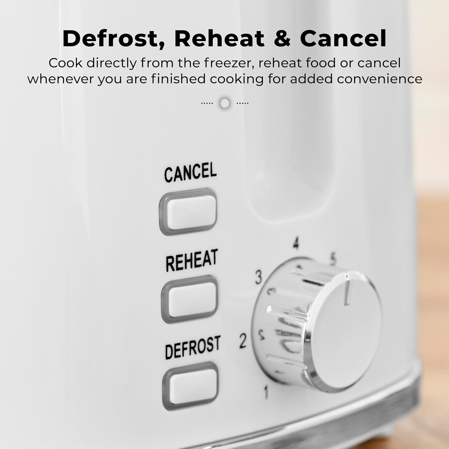- DEFROST. REHEAT & CANCEL BUTTONS: Cook directly from the freezer. reheat food or cancel whenever you are finished cooking for added convenience