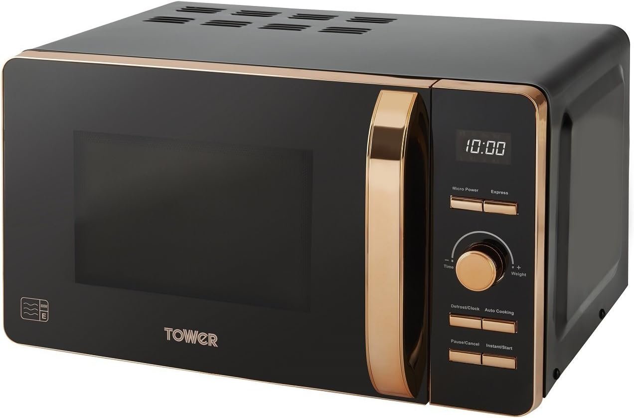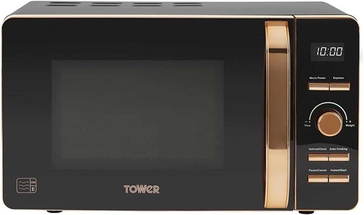 For convenient cooking with added elegance. use Tower’s 800W 20 litre digital microwave styled with black and rose gold accents. This trendy microwave is essential for your everyday needs with its 8 autocook settings. including milk. rice. spaghetti. potatoes. auto-reheat. fish. popcorn and pizzas for all your favourite foods at the touch of a button.