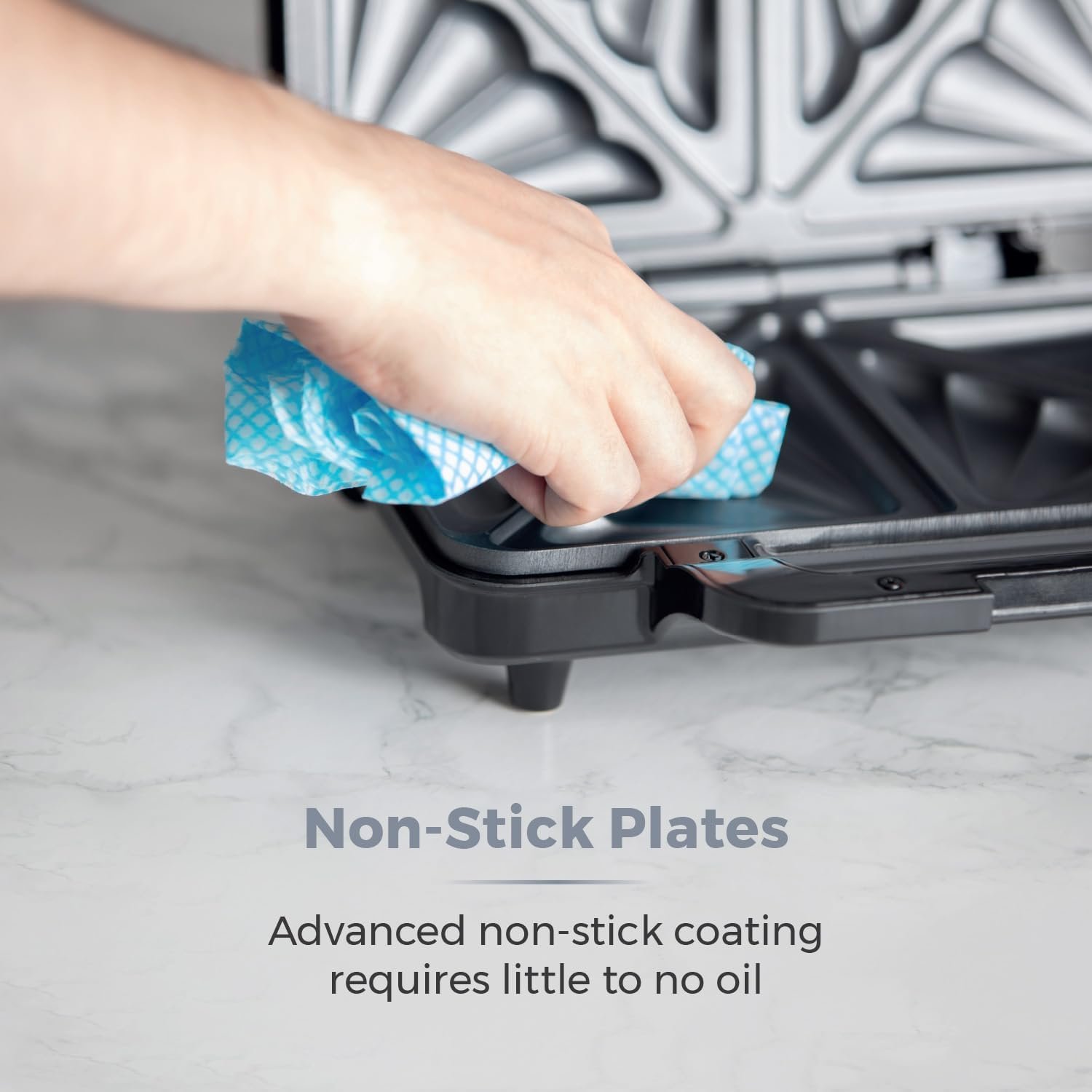 - NON-STICK PLATES: Each plate has a high quality non-stick coating that prevents your food from sticking to the plates for fuss-free cleaning. Little to no oil is required so you can enjoy healthier meals