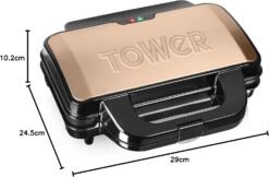Tower T27013RG Deep Fill Sandwich Maker with Extra Deep and Easy to Clean Non-Stick Plates. Automatic Temperature Control. 900W. Rose Gold and Black