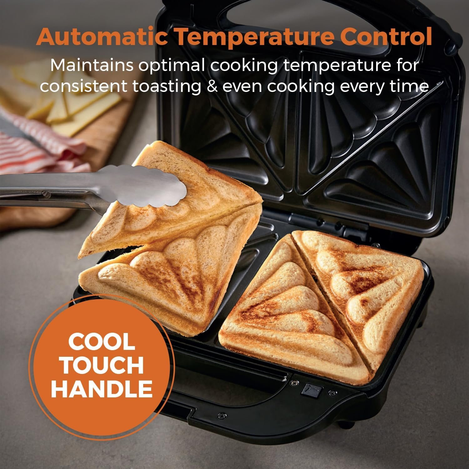 safely handle the maker and check on the sandwiches during cooking