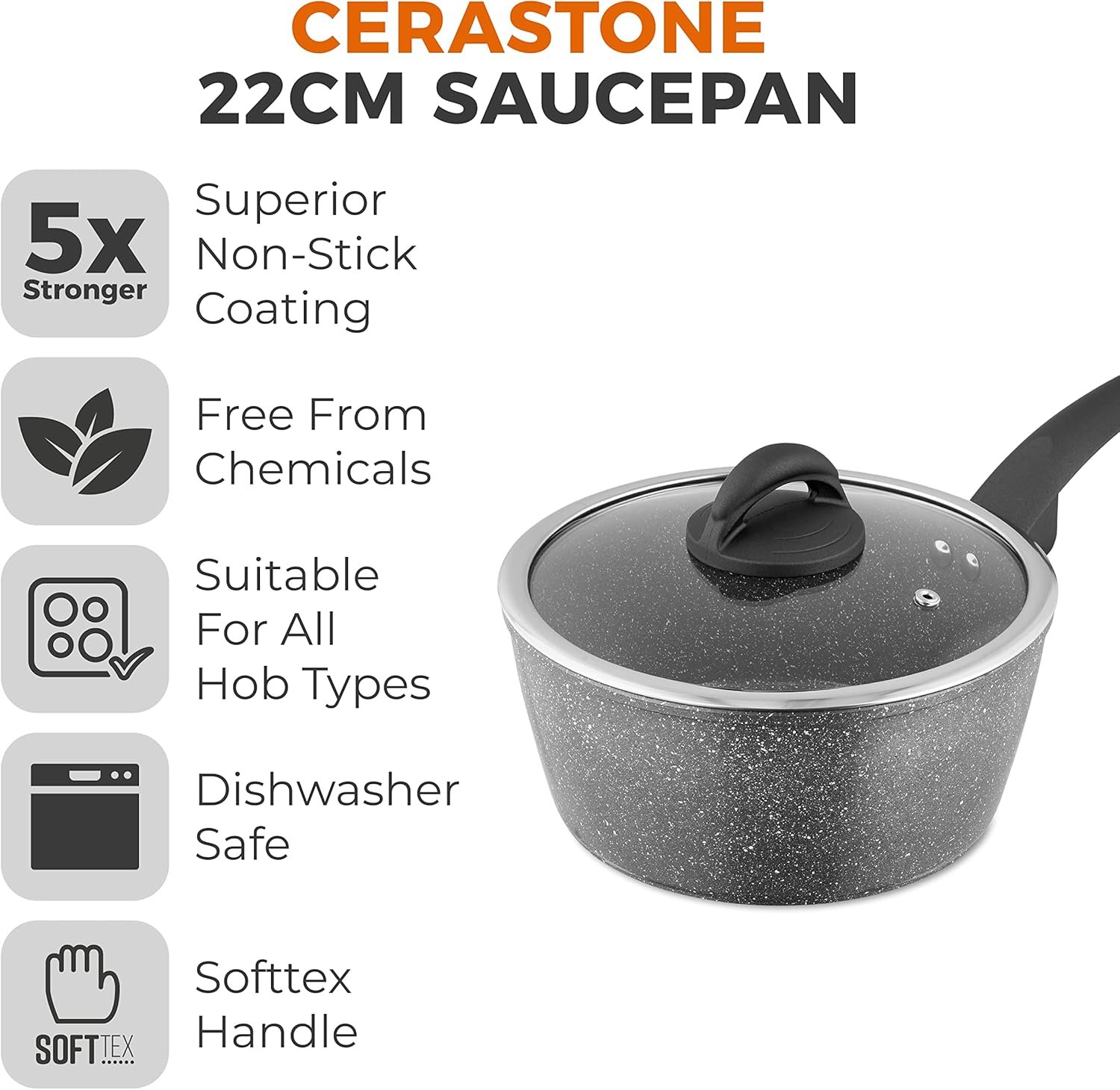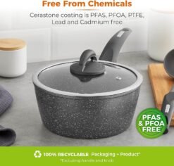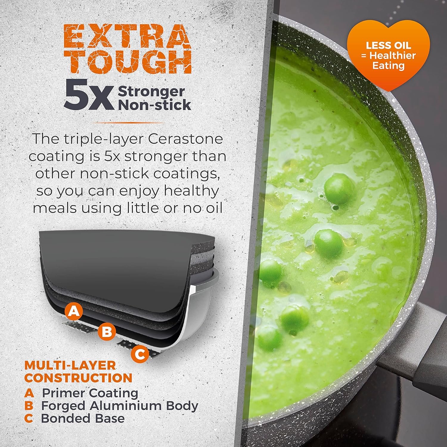 - CERASTONE COATING: Features a superior multi-layered ceramic stone construction with non-stick qualities. using less oil for virtually fat free cooking