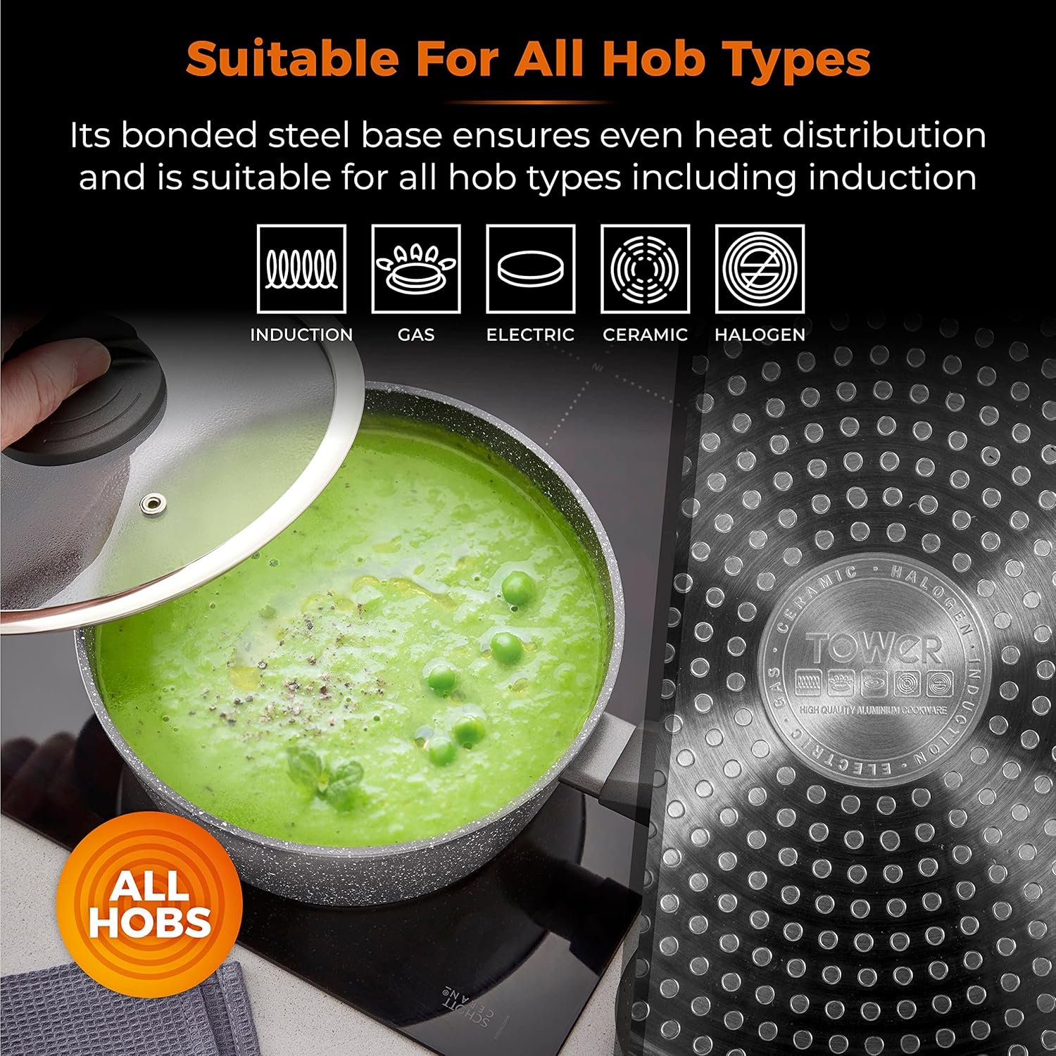 - BONDED STEEL BASE: Provides even heat distribution for better cooking results and is suitable for all hob types