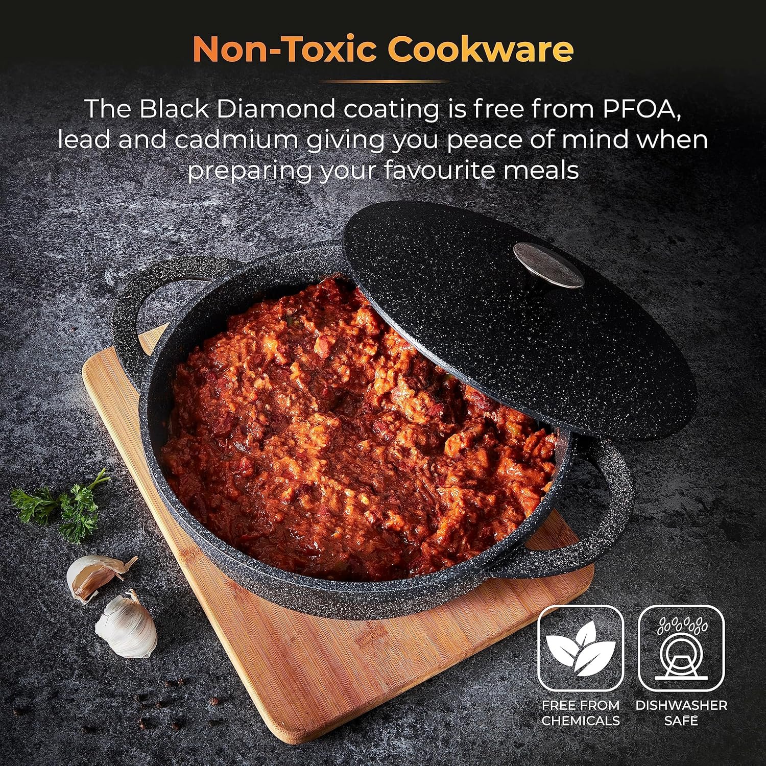 - FREE FROM TOXINS: The Black Diamond coating is free from PFOA. lead and cadmium giving you peace of mind when preparing your favourite meals