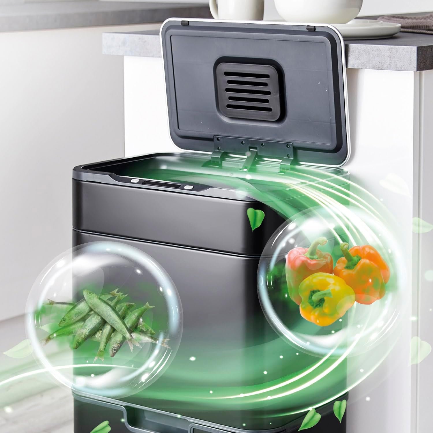 - REDUCES UNPLEASANT ODOURS: The carbon filter that sits within a compartment in the bin lid also helps to reduce unpleasant odours & absorbs moisture from within the bin – this. combined with the Ozone filter fresh technology. allows you to make full use of your bin’s capacity. Replacement filters are available to purchase – we recommend replacing the filter every 3 months.