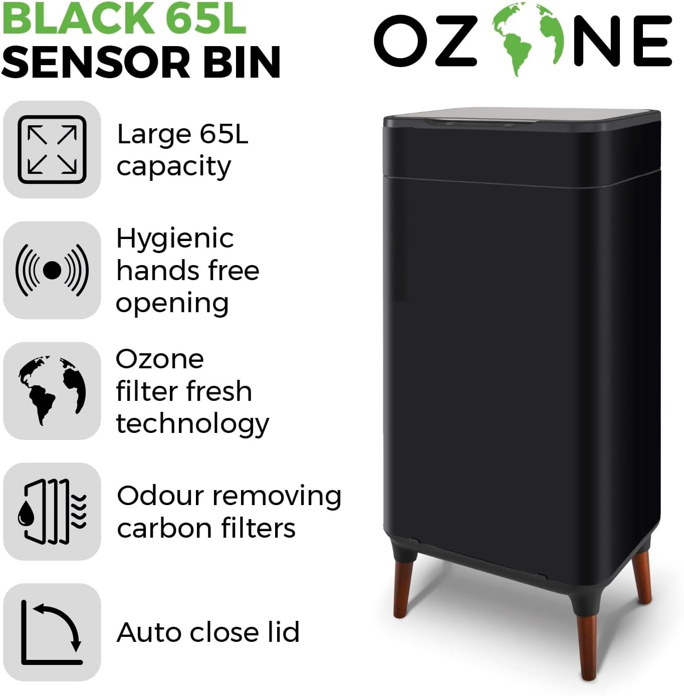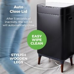 Tower T938022BLK Ozone Sensor Bin with Legs. Large 65L. Hands Free Opening. Carbon Filter. Black